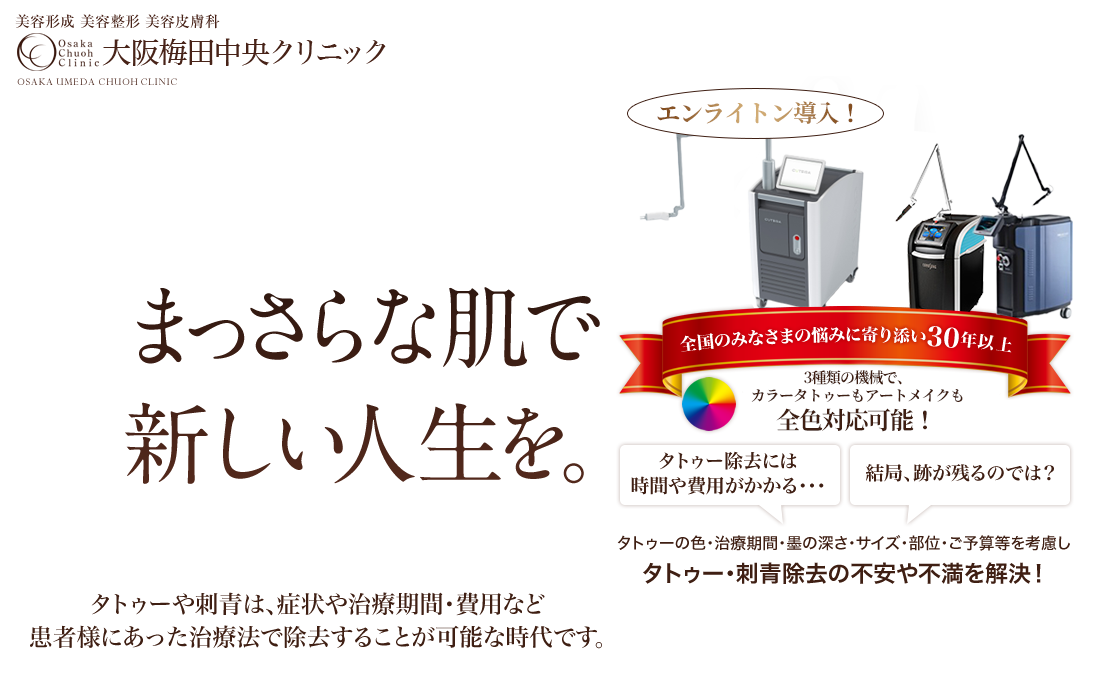 あらゆるタイプのタトゥー・刺青の除去に対応。